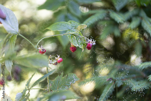 Fototapeta premium Ripe raspberries. Close-up macro view.
