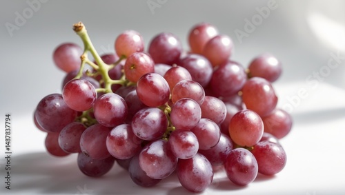 © LoFi J., Fototapeta premium Ripe Red Globe Grapes Bunch with Stems and Leaves, Closeup Macro Food Photography