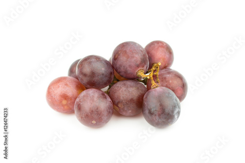 © Achira22, Fototapeta premium Ripe red grape with leaves isolated on white