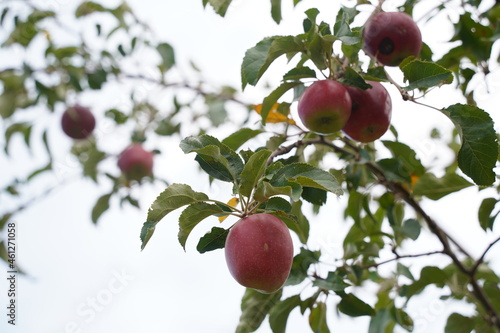 © Vladimir, Obraz premium Ripe seasonal apples on tree branches in the garden