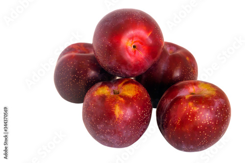 Obraz premium Ripe sweet juicy plums on an isolated white background.