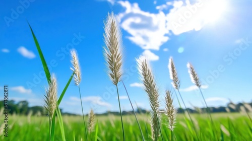 © ADD PHOTO, Obraz premium Ripe Wheat Field in Scenic Rural Landscape Under Bright Blue Sky