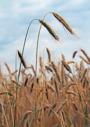 © goldika, Fototapeta premium Ripening ears of wheat on the background blue sky