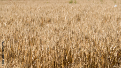 Fototapeta premium ripening ears of yellow wheat field. Rye rural meadow background. Nature. Rich harvest.