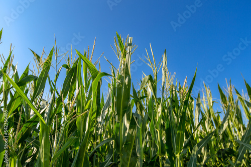 Fototapeta premium Ripening yellow corn on the cob, maize closeup