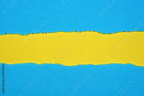 Obraz premium Ripped in blue paper on yellow background
