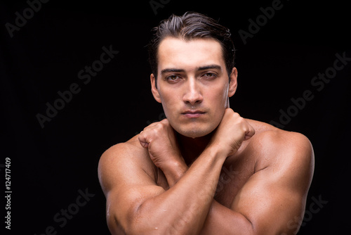 Fototapeta premium Ripped muscular handsome man on black background