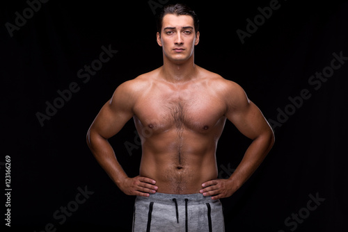Fototapeta premium Ripped muscular man on black background
