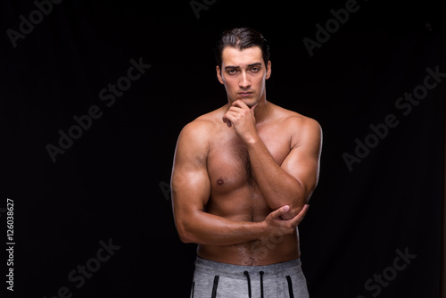 Fototapeta premium Ripped muscular man on black background