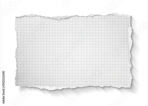 Obraz premium Ripped rectangular white paper with soft shadow lies on a squared background,...