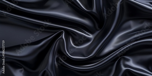 Fototapeta premium rippled black satin fabric. Whole background.