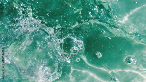 © miftah, Fototapeta premium Rippled teal water surface with splashes