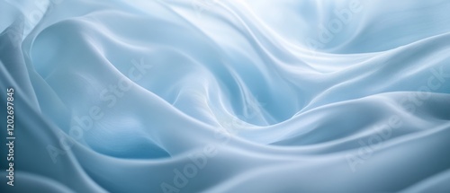 Obraz premium Rippling folds of smooth fabric create a soothing visual of movement, their soft blue tones exuding an aura of tranquility and gentle elegance.