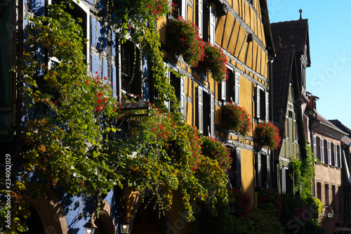 Fototapeta premium Riquewihr,France-October 13, 2018: Beautiful houses in Riquewihr, Alsace, France