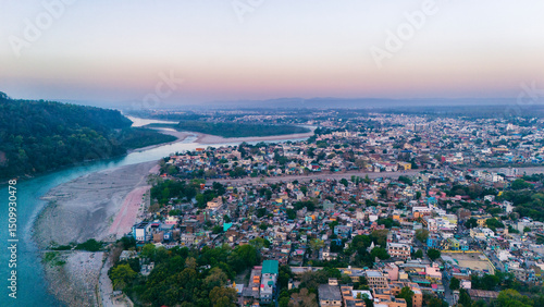 © FireFXStudio, Fototapeta premium Rishikesh Drone Image in morning View