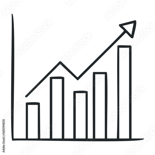 Fototapeta premium Rising bar graph with ascending arrow indicating growth and progress. Vector...