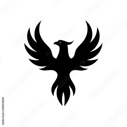 © Raafi, Fototapeta premium Rising phoenix silhouette with wide flaming wings