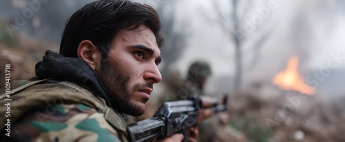 © ckybe, Fototapeta premium Rising rebel storms shake up security landscapes like wild winds in conflict zones.