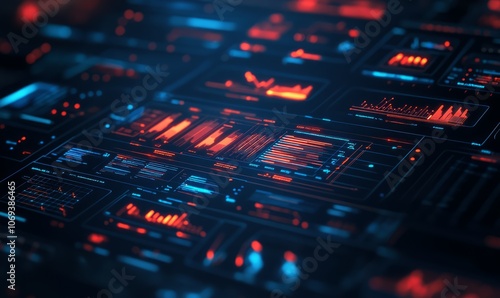 Obraz premium Risk mitigation dashboard, virtual hologram interface, futuristic corporate...
