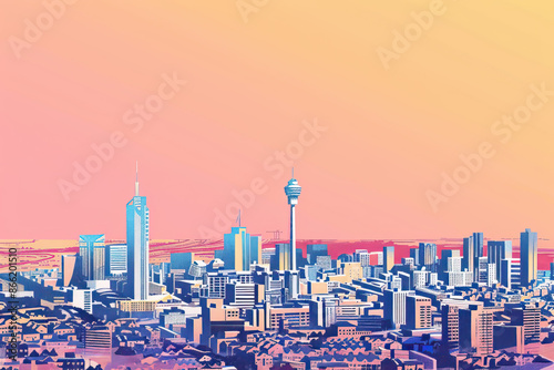Fototapeta premium Risograph riso print travel poster, card, wallpaper or banner illustration, modern, isolated, clear and simple of Johannesburg, South Africa. Artistic, screen printing, stencil digital duplication