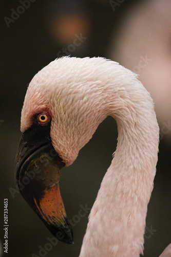© Etna ·REC Attivo, Fototapeta premium Ritratto di fenicottero rosa -dettaglio dell'occhio becco e piumaggio