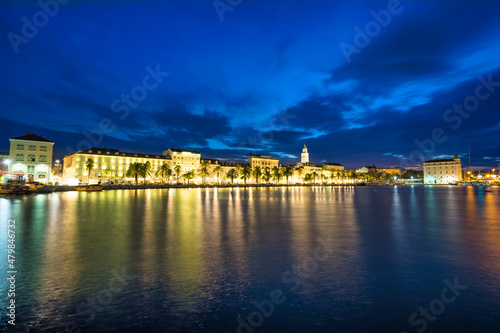 Fototapeta premium Riva promenade with Diocletian Palace at dawn. Split, Croatia