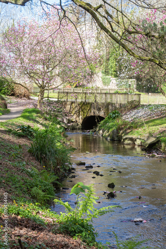 © oceane2508, Obraz premium River and bridge in a park during spring