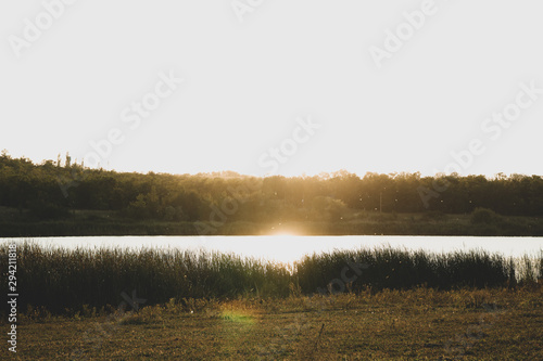 © Atlas, Fototapeta premium River and forest against sunset. Beautiful summer weather