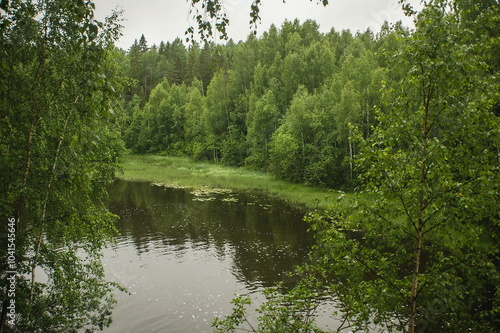 © Olga Angelucci, Obraz premium river and grass in the forest