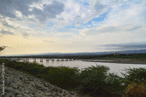 © shakeelbaloch, Obraz premium river and sky bridge landscape clouds