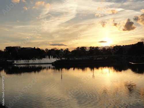 © Margarita, Obraz premium river at sunset, clouds reflected in the water