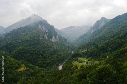 © oljasimovic, Naklejka premium river at the foot of the mountains