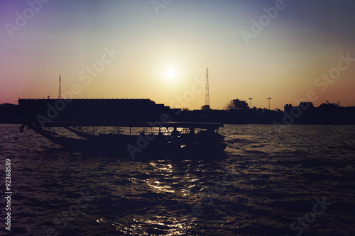Obraz premium River boats crossing the Chao Phraya river in Bangkok, Thailand. with light leak filter.