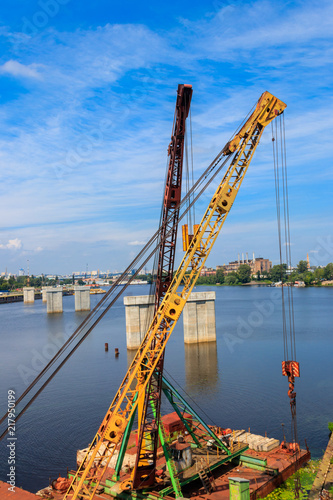 © olyasolodenko, Fototapeta premium River cargo port in Kiev, Ukraine
