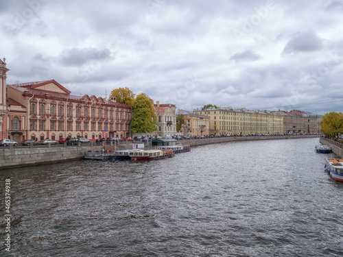 © Natalia, Fototapeta premium River cityscape with boats and former private residences of Russian nobility on the embankment of river Fontanka