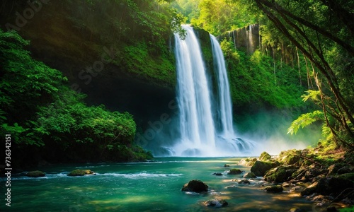 Fototapeta premium River deep in mountain forest, amazing nature