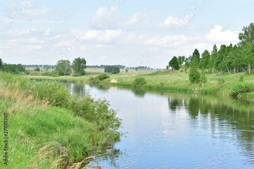 © Lushchikov Valeriy, Fototapeta premium River flowing near the mountain.