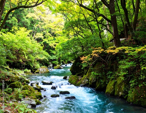 Obraz premium River flowing through lush forest (2)