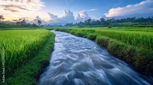 © Anjar Stock, Obraz premium River flowing through rice paddy fields