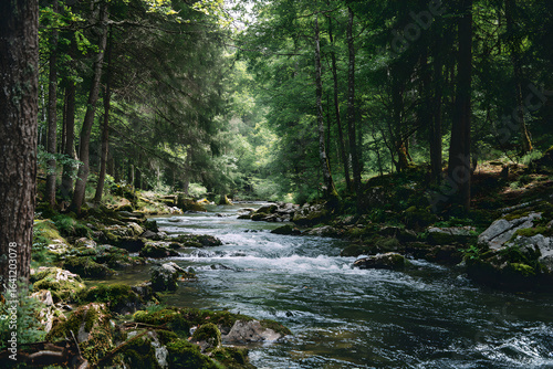 © Adnan, Obraz premium River Flowing Through the Forest