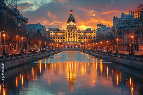 © Jelena, Obraz premium River Flowing Through Urban Cityscape