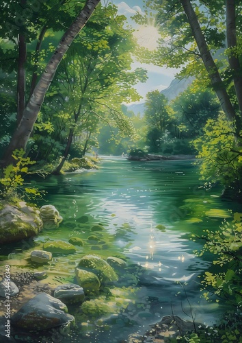 © Cary, Obraz premium river forest rocks trees green liquid lake sunny day top rated young scroll paradise
