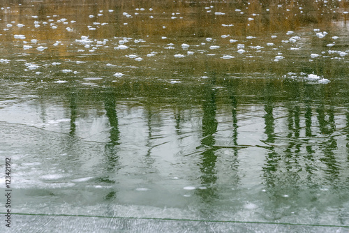 © Iri_sha, Fototapeta premium river ice reflection snow background