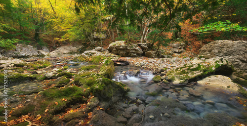 Obraz premium River in autumn forest. Nature composition.