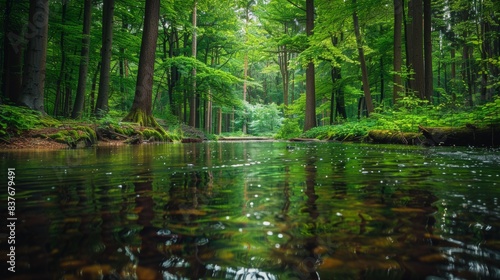 © avivmuzi, Obraz premium River in Forest with Big Trees