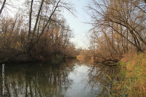 © VIKTOR, Obraz premium River in the autumn forest. Beautiful nature background.