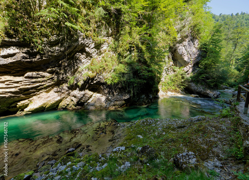 © Tomasz, Naklejka premium River in the forest. Vintagar Gore Slovenia. Triglav National Park.