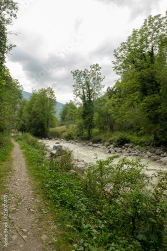 © vicenfoto, Fototapeta premium River in the valley of aran next to vielha