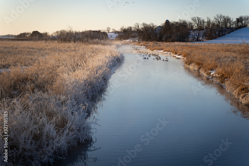 © Jason, Obraz premium river in winter with geese
