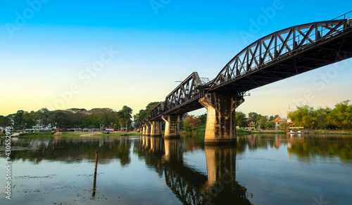Fototapeta premium River Kwai bridge with the blue sky in Kanchanaburi is the wonderful place